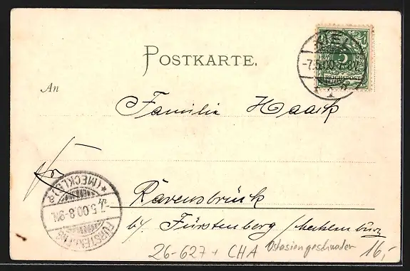 alte Ansichtskarte, gelaufen 1900, guter Zustand