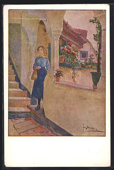 Künstler-AK Josef Straka: Vorstadtmädchen