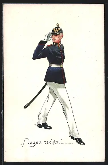 Künstler-AK Jupp Wiertz: Augen rechts!, Alter Soldat
