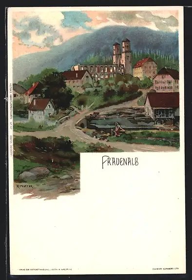 Künstler-AK K. Mutter: Frauenalb, Ortspartie