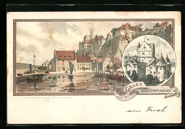 Künstler-AK K. Mutter: Meersburg, Blick auf den Ort