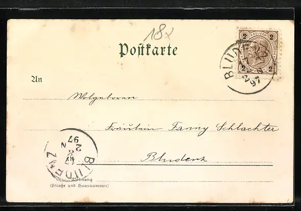 alte Ansichtskarte, gelaufen 1897, guter Zustand