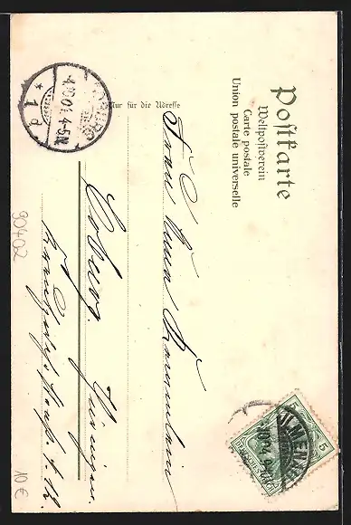alte Ansichtskarte, gelaufen 1904, Stempelspur, guter Zustand