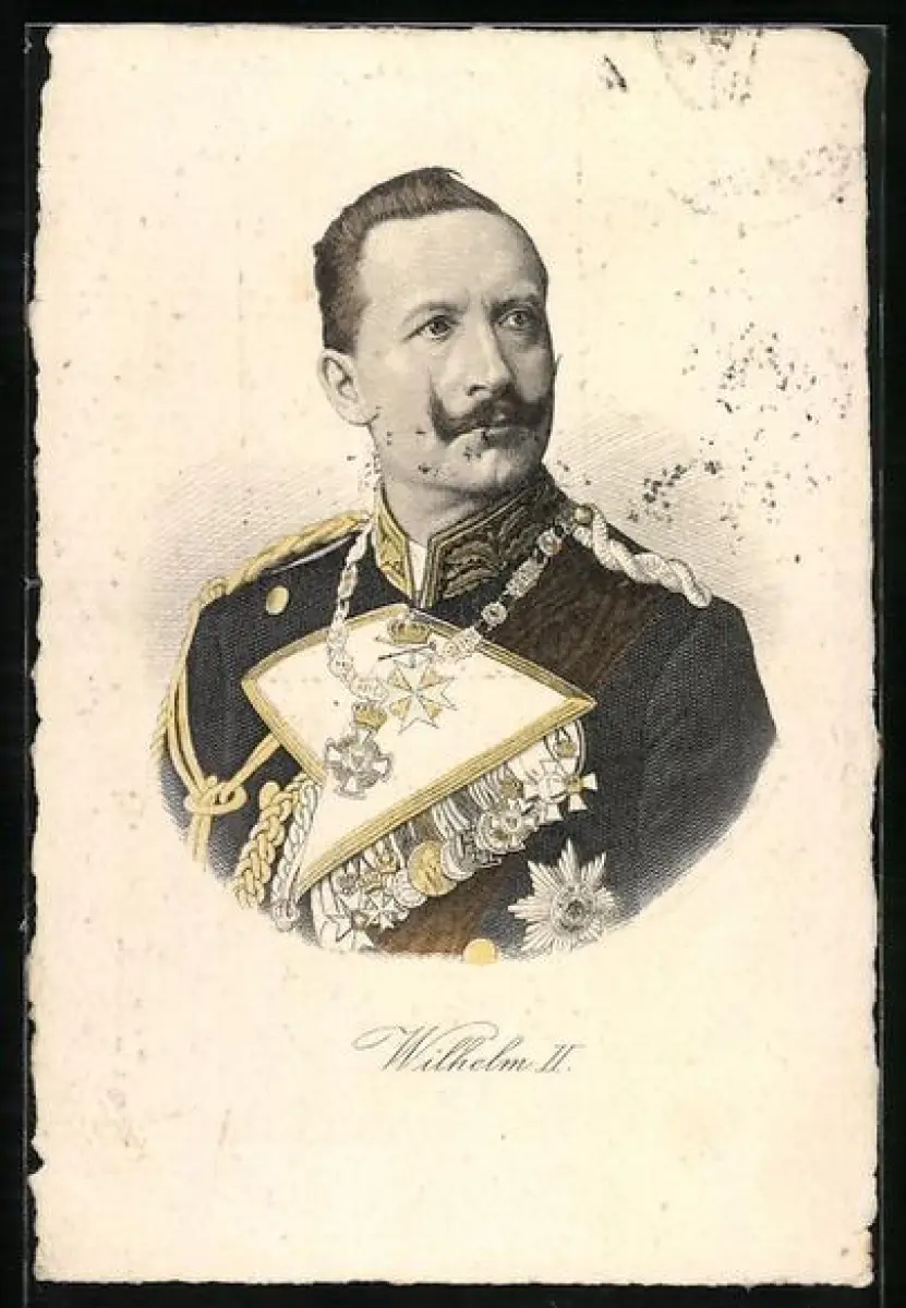 Künstler-AK Kaiser Wilhelm II. in Uniform mit Orden