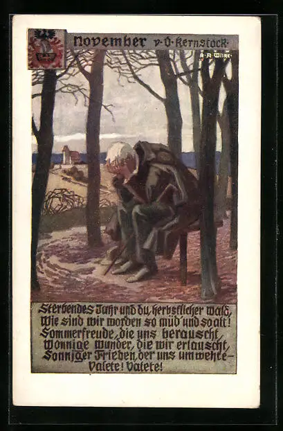 Künstler-AK Karl Alex Wilke: November, Mann in Trauer auf einer Bank sitzend