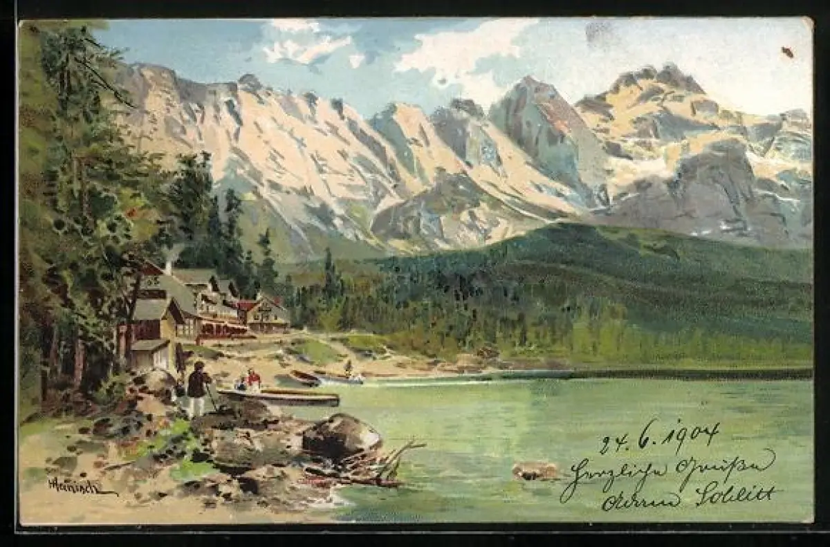 Künstler-AK Karl Heinisch: Eibsee, Totalansicht