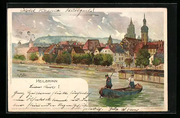 Künstler-AK Karl Mutter: Heilbronn, Uferpartie mit Boot