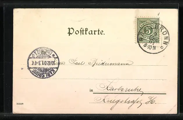 alte Ansichtskarte, gelaufen 1901, guter Zustand