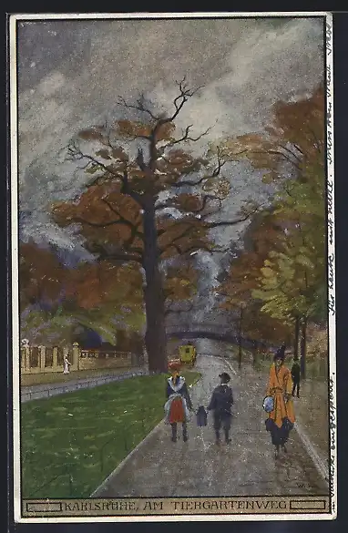 Künstler-AK Karlsruhe, Partie am Tiergartenweg