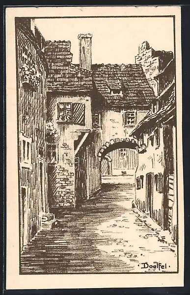 Künstler-AK Kitzingen, Günthershof mit Torbogen