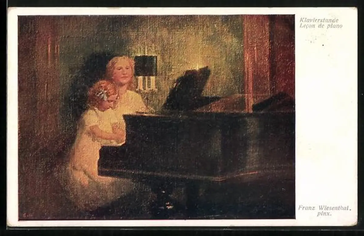 Künstler-AK Klavierstunde, Mutter und Tochter