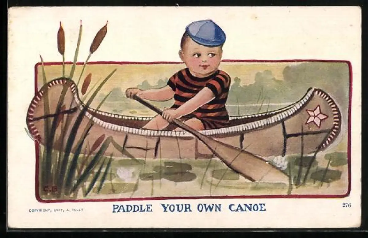Künstler-AK Kleiner Junge rudert in einem Kanu