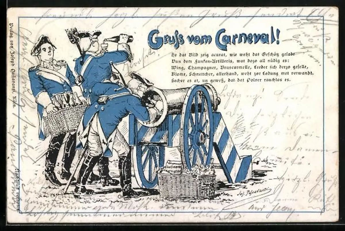 Künstler-AK Köln, Funkenartillerie stopft das Geschütz, Spruch