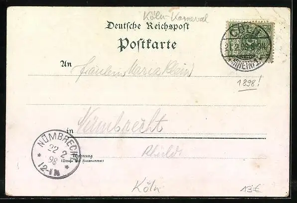 alte Ansichtskarte, gelaufen 1898, Eckknick li. oben, guter Zustand