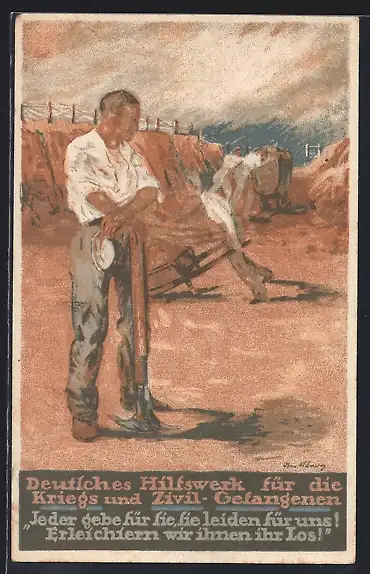 Künstler-AK Kriegs- und Zivilgefangene bei der Feldarbeit