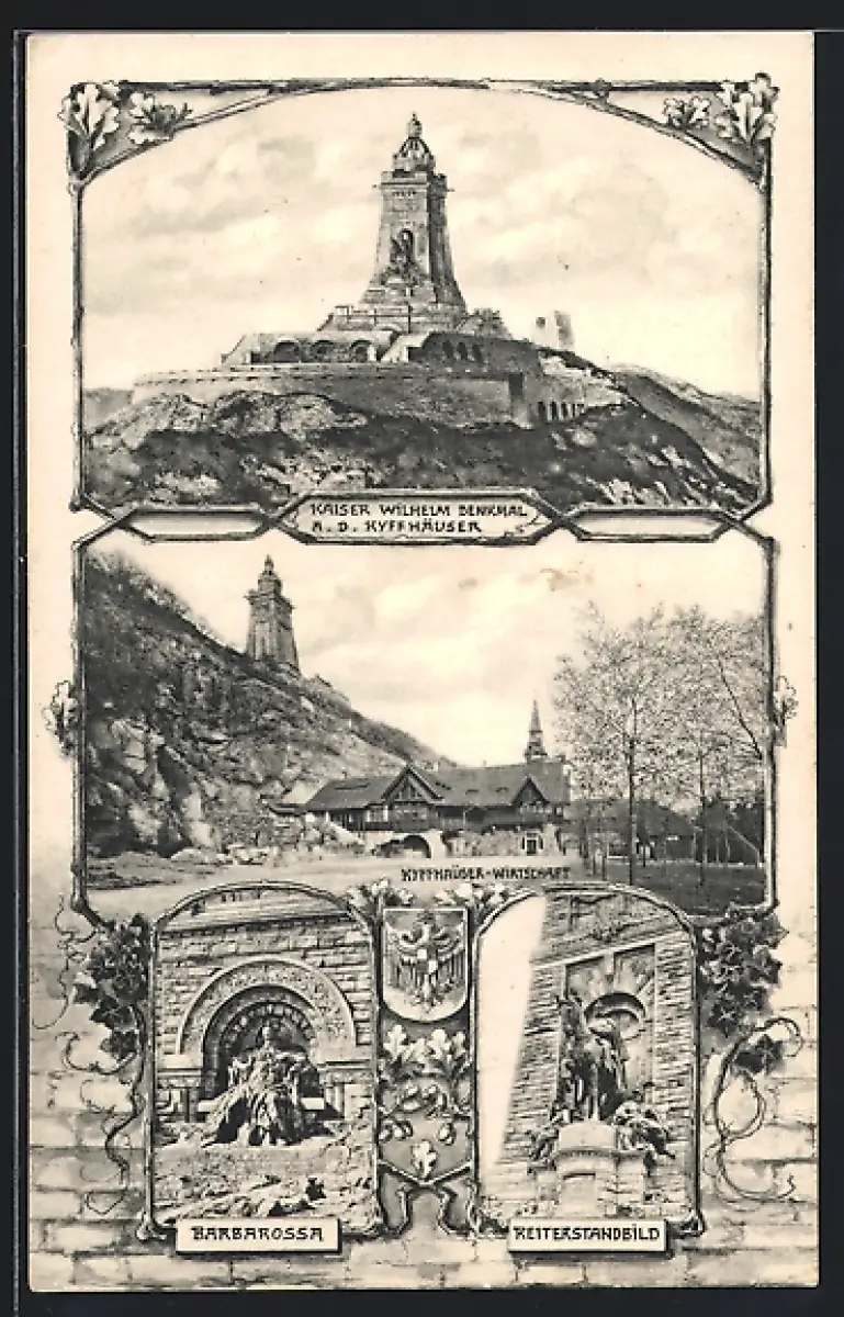 Künstler-AK Kyffhäuser, Kaiser Wilhelm Denkmal, Gastwirtschaft, Barbarossa
