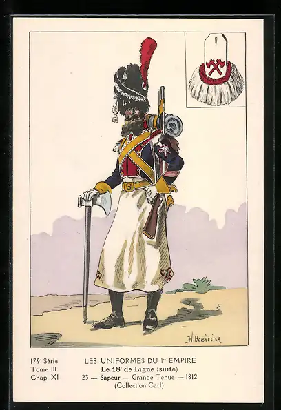 Künstler-AK Le 18 de Ligne, Sapeur, Grande Tenue