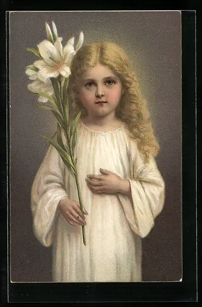 Künstler-AK Leiber: Unschuld, Mädchen mit Blume