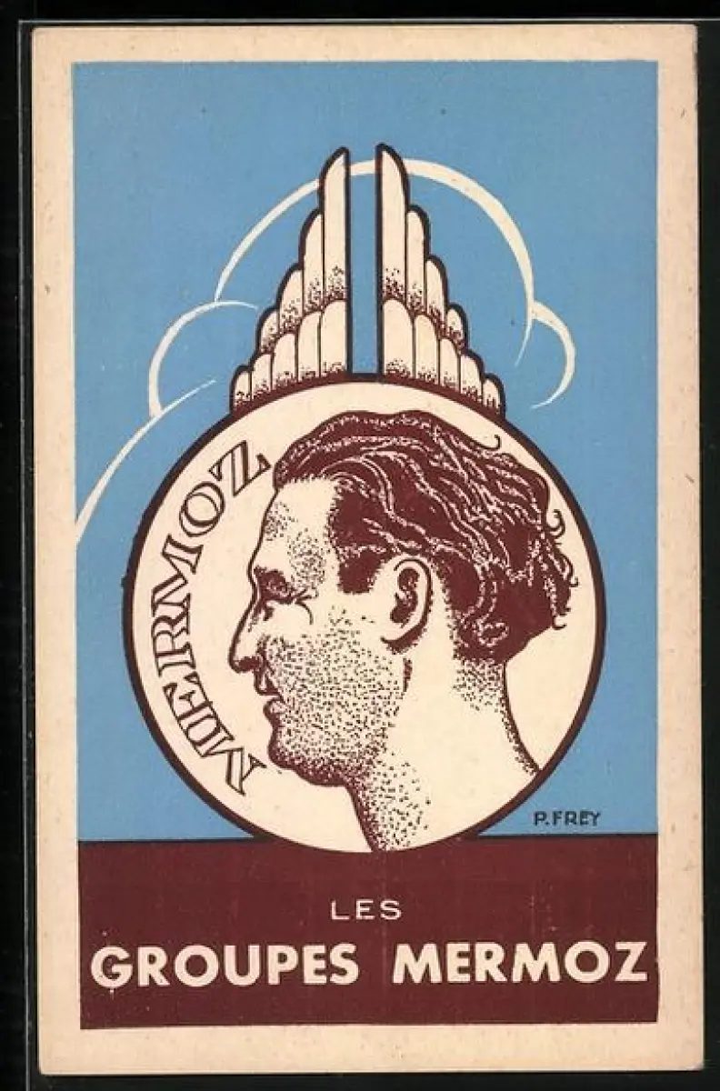 Künstler-AK Les Groupes Mermoz, Portrait Jean Mermoz