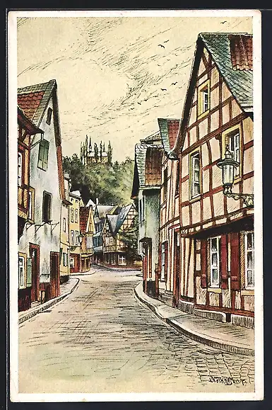 Künstler-AK Linz / Rhein, Partie in der Brüderstrasse