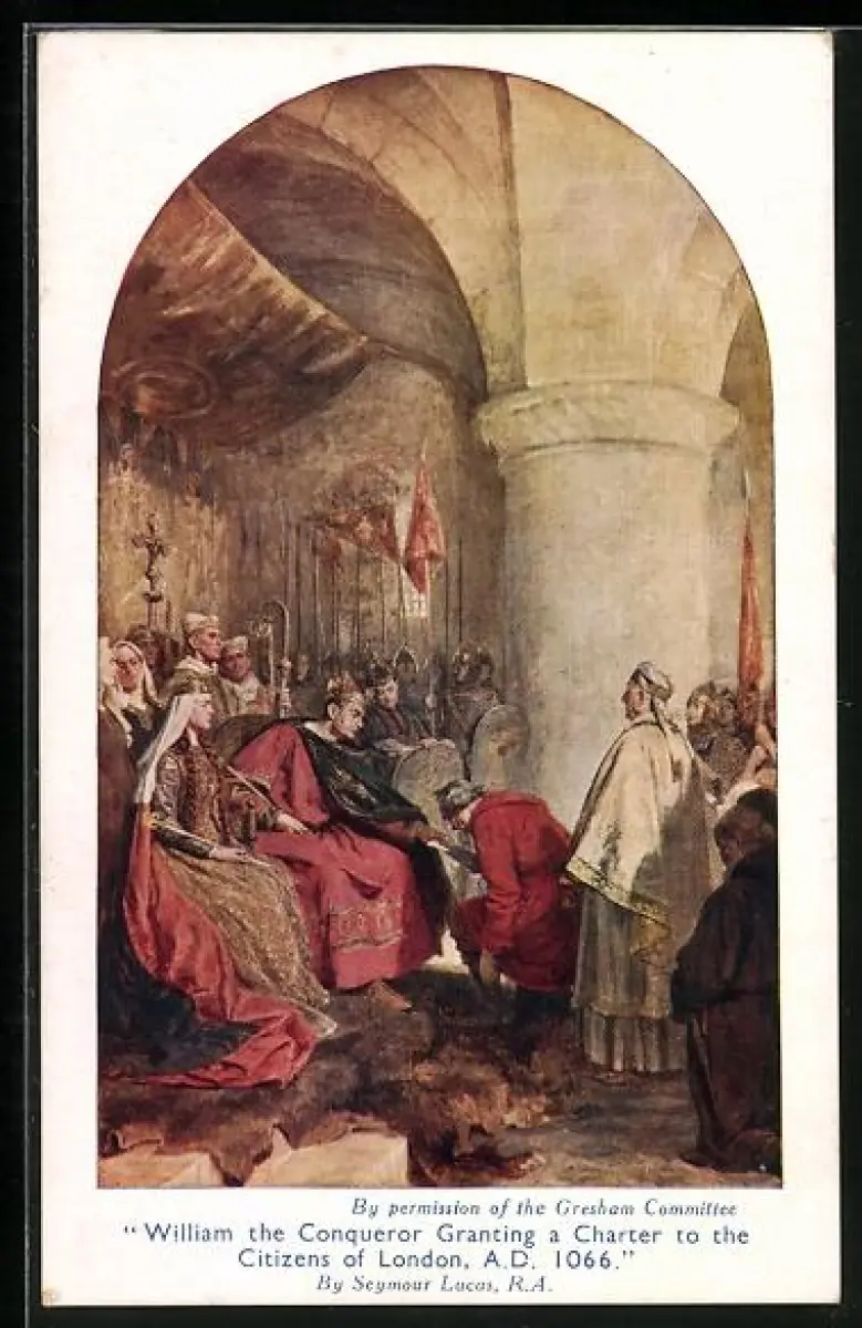 Künstler-AK London, William the Conqueror Granting a Charter to the Citizens of London in 1066