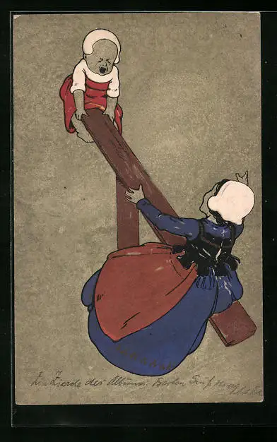 Künstler-AK M. Munk Nr. 139: Mutter mit Kind auf einer Wippe