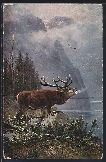 Künstler-AK M.Müller jun.: Röhrender Hirsch
