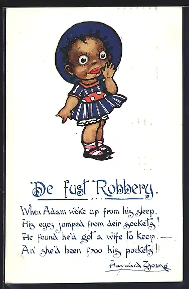 Künstler-AK Mädchen in blauem Kleid mit Hut, De fust Robbery