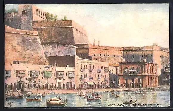 Künstler-AK Malta, Custom House and Landing Place