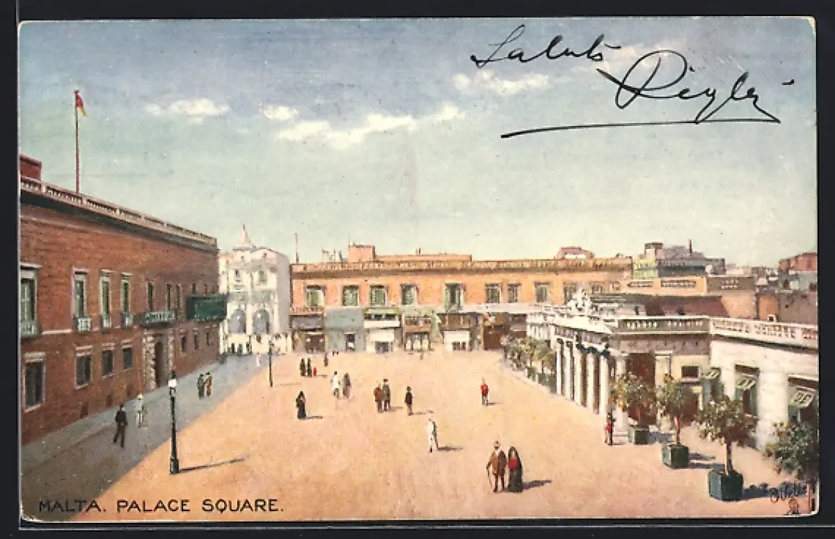 Künstler-AK Malta, Palace Square mit grossen Gebäuden und Spaziergängern auf der Strasse