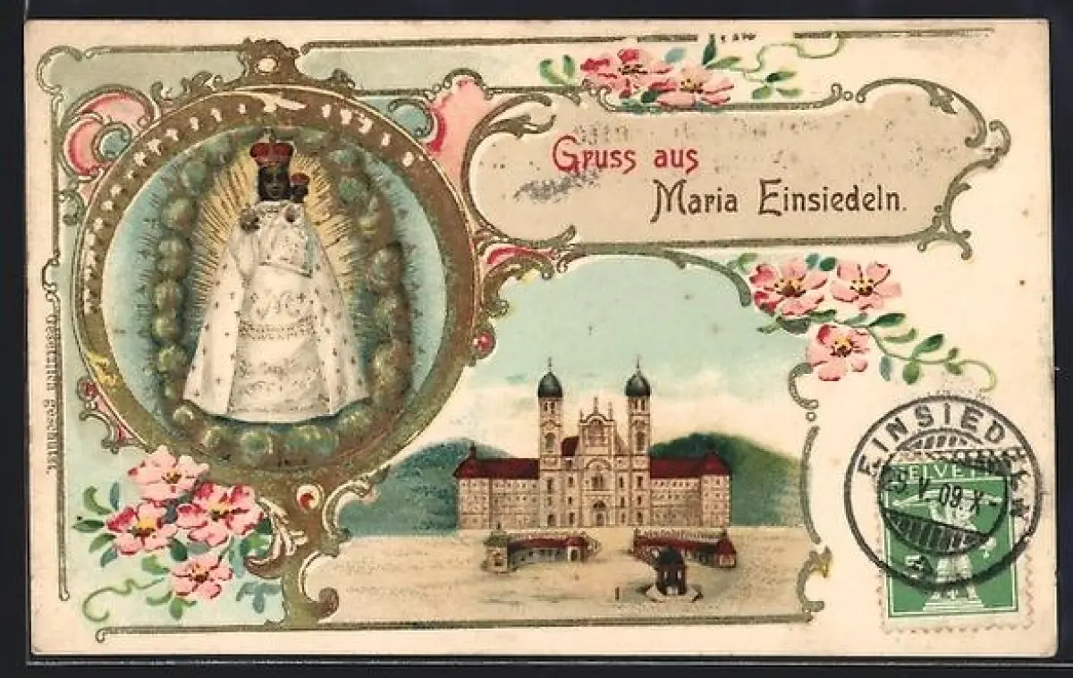 Künstler-AK Maria Einsiedeln, Wallfahrtskirche mit Gnadenbild