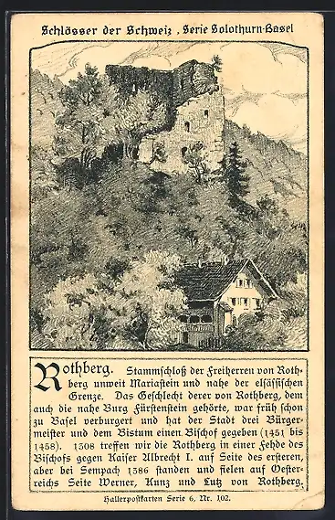 Künstler-AK Mariastein, Schloss-Ruine Rothberg