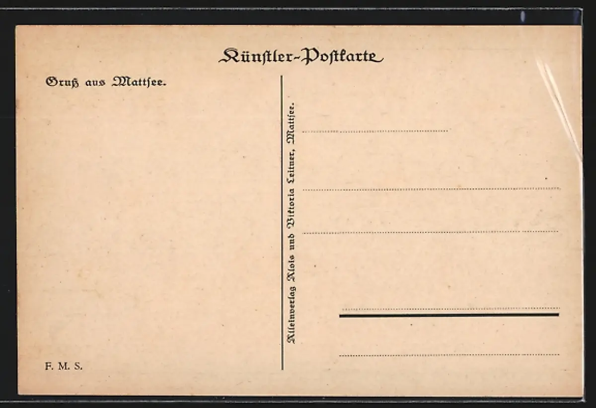 Künstler-AK Mattsee, Ortsansicht mit Segelbooten