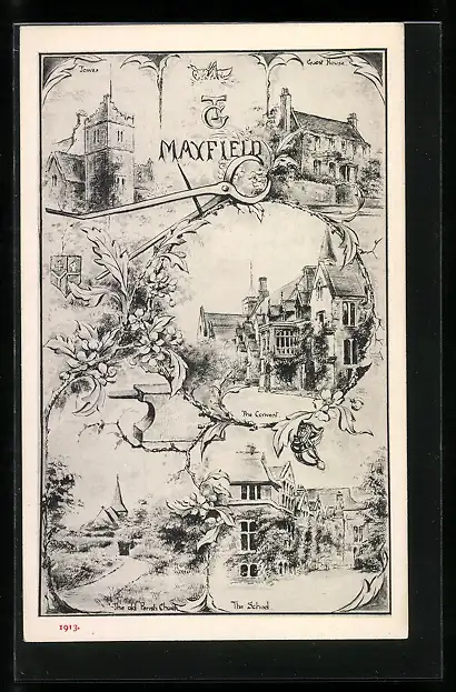 Künstler-AK Mayfield, The School, The Convent, The old Perish Church