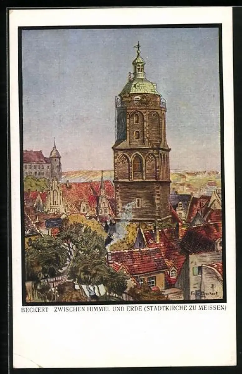 Künstler-AK Meissen / Elbe, Stadtkirche