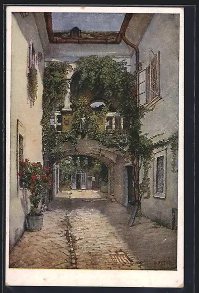 Künstler-AK Mödling, Ansicht des Renaissancehofs