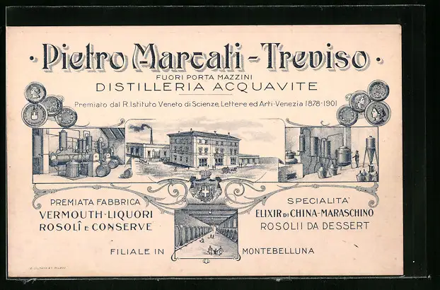 Künstler-AK Montebelluna, Pietro Marcati-Treviso Distilleriea Acquavite