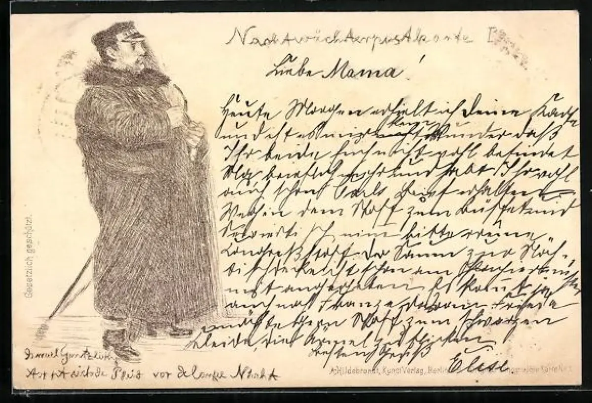 Künstler-AK Nachtwächter in dickem Wintermantel