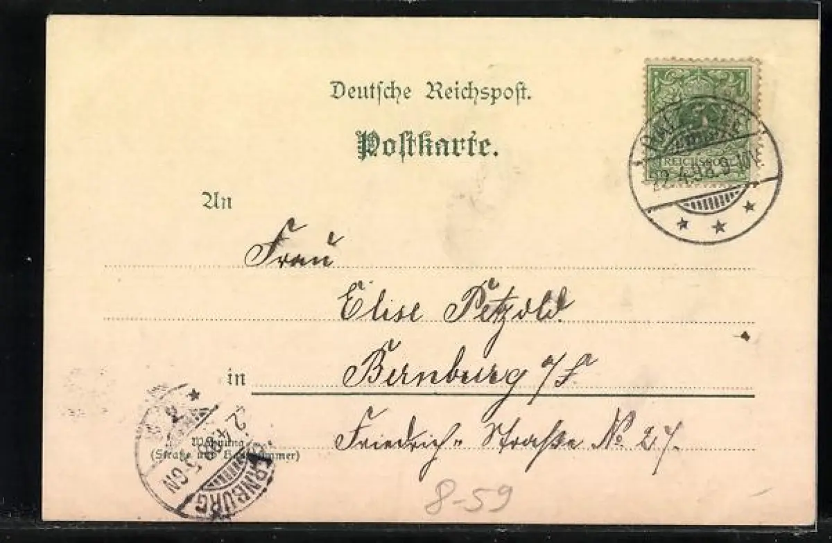 alte Ansichtskarte, gelaufen 1898, Stempelspur, guter Zustand