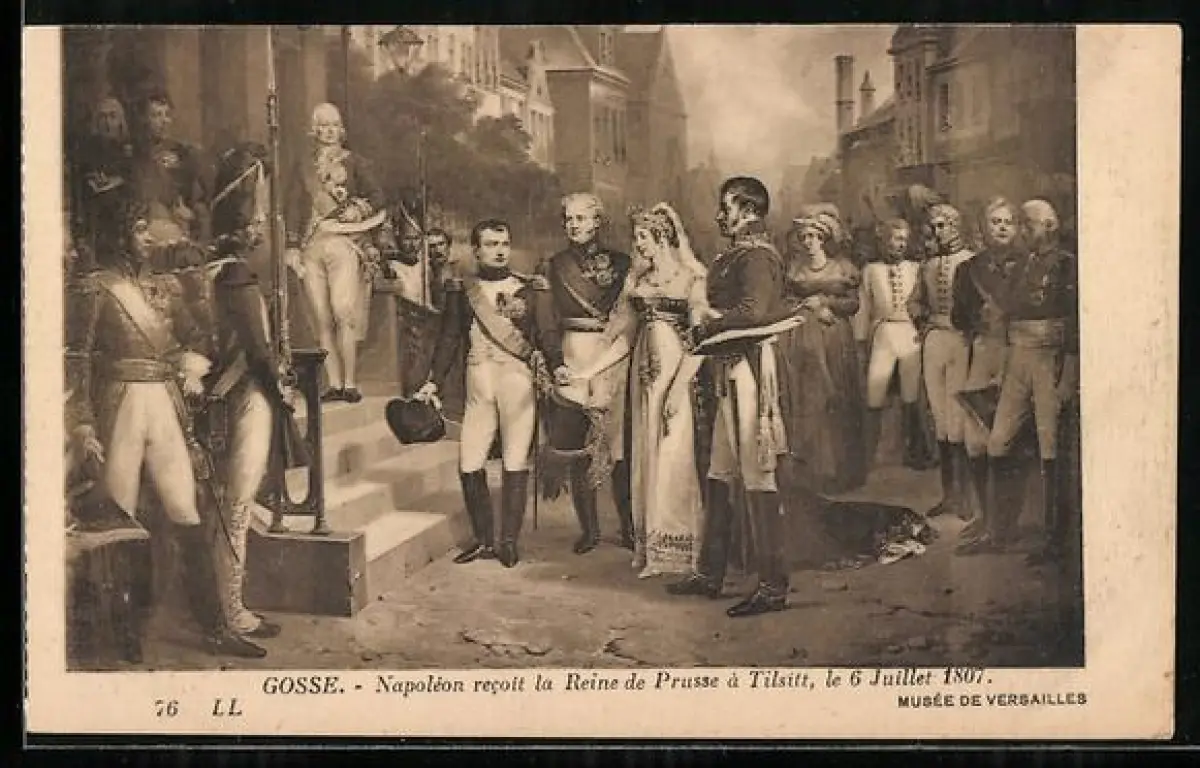Künstler-AK Napoléon recoit la Reine de Prusse á Tilsitt, le 6 Juillet 1807