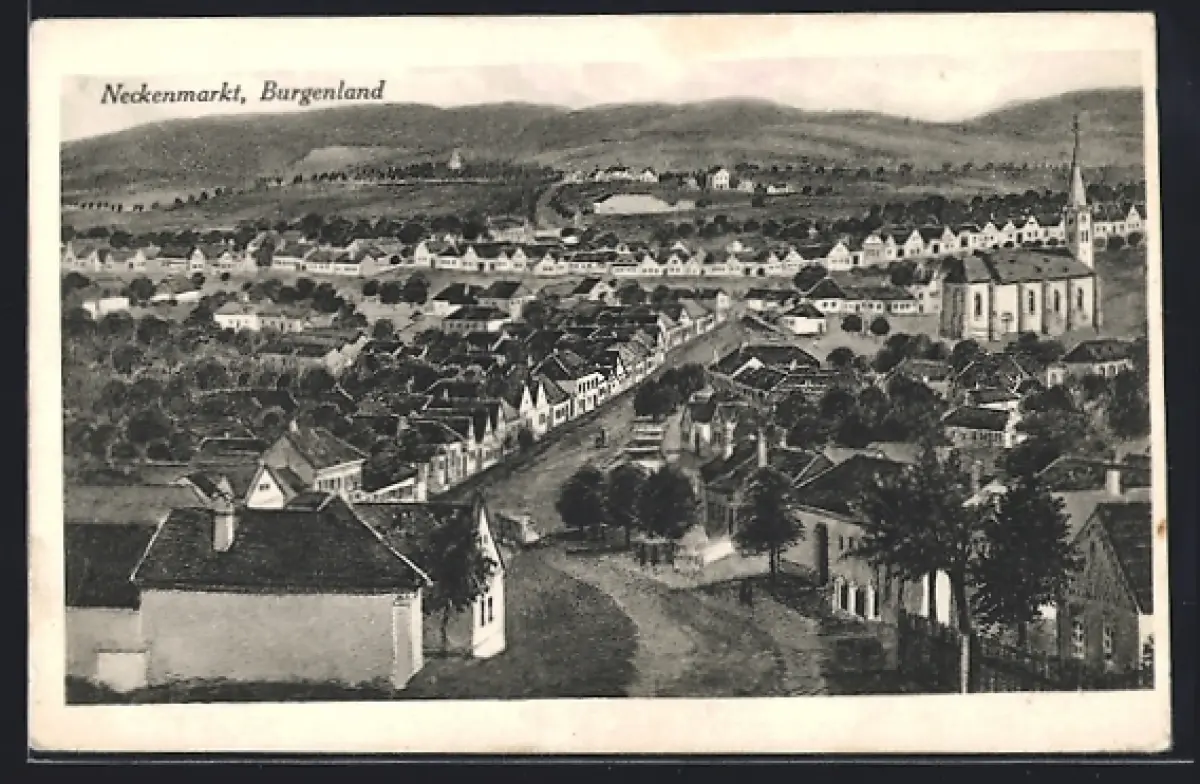 Künstler-AK Neckenmarkt /Burgenland, Strassenpartie mit Kirche