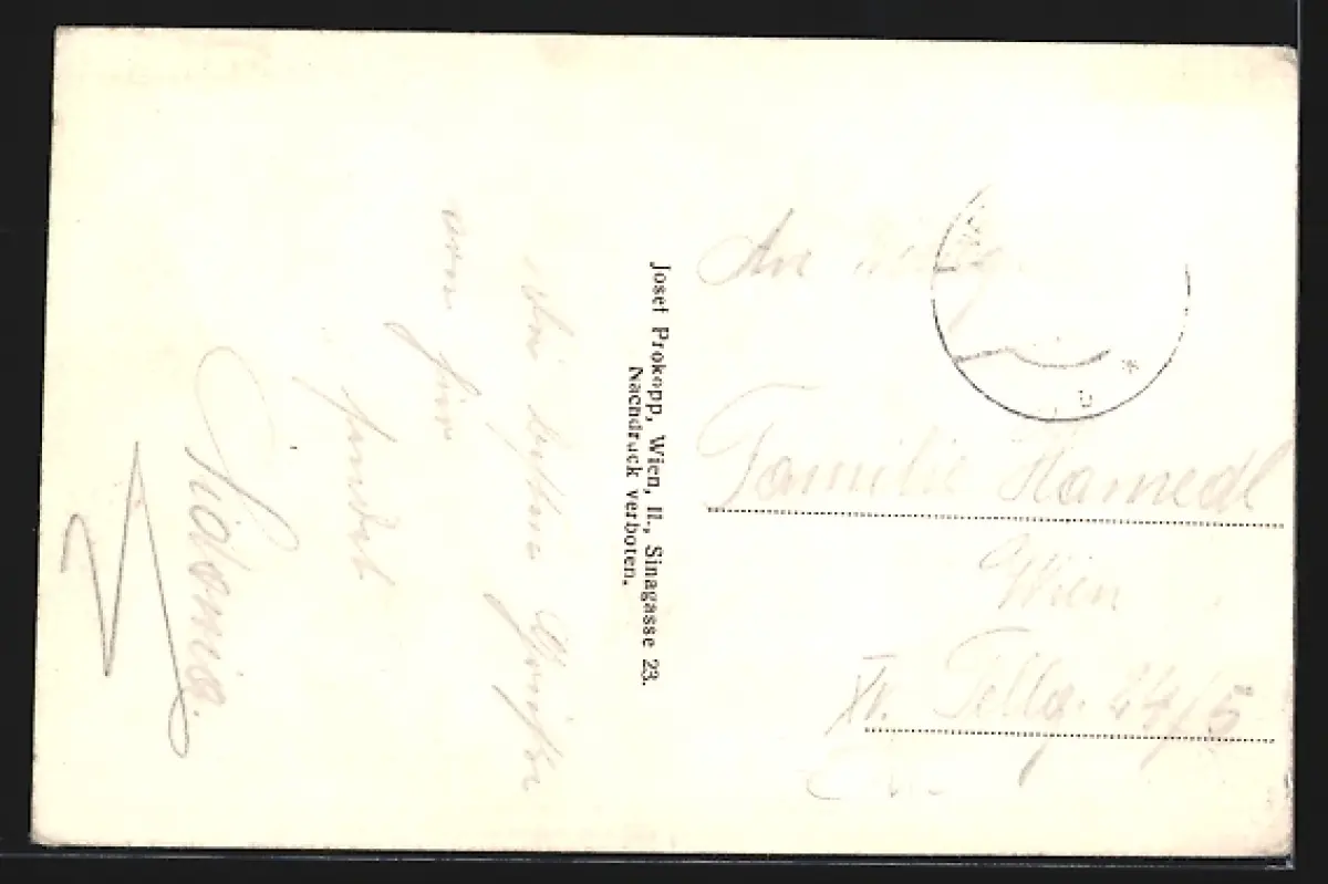 alte Ansichtskarte, gelaufen, Briefmarke entfernt, rückseitig Oberflächenschaden, rückseitig Klebe- und Papierreste, guter Zustand
