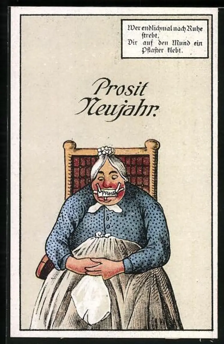 Künstler-AK Neujahrsgruss, Sprechverbot, frauenfeindlicher Humor