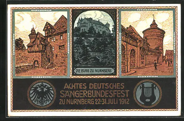 Künstler-AK Nürnberg, 8. Deutsches Sänger-Bundes-Fest 1912, Burg zu Nürnberg