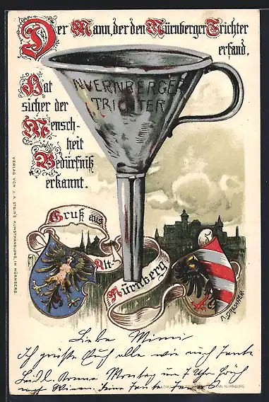 Künstler-AK Nürnberg, Der Nürnberger-Trichter, Wappen, 1899