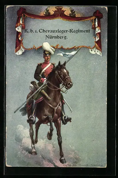 Künstler-AK Nürnberg, K. b. 1. Chevauxleger-Regiment, Soldat in Uniform