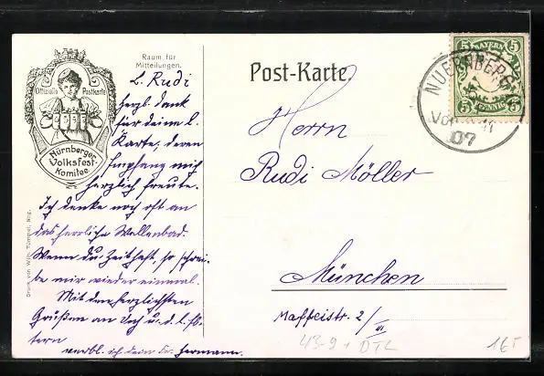 alte Ansichtskarte, gelaufen 1907, guter Zustand
