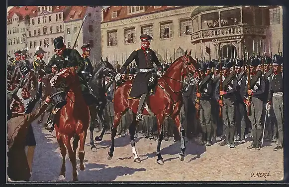 Künstler-AK O. Merte: Blüchers Einzug auf dem Marktplatz in Leipzig