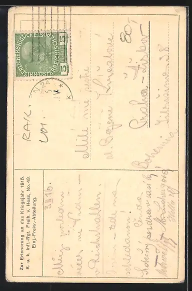 gelaufen 1916, Stempelspur, Eckknick links oben, guter Zustand