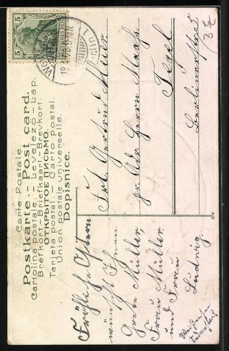 alte Ansichtskarte, gelaufen 1908, guter Zustand